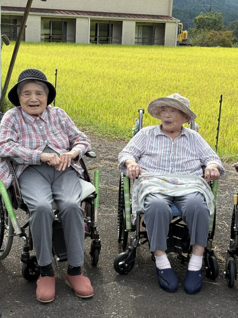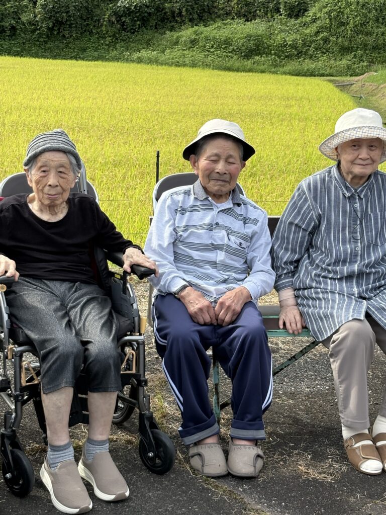 黄金色の稲穂をバックにお散歩とおやつタイム